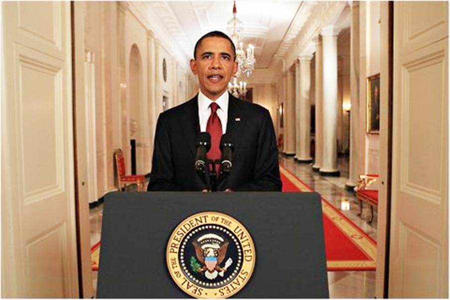 TT Obama nói hôm Chủ Nhật rằng, một toán hành quân Hoa Kỳ đã đột kích tấn công vào một căn cứ tại thành pố Abbottabad của Pakistan nơi nhiều tháng trước đây tình báo làm việc đã khám phá rằng đó là nơi Bin Laden đang sinh sống. Bin Laden đã bị giết ngay sau khi khai hỏa, và toán hành quân đã lấy được xác của y.